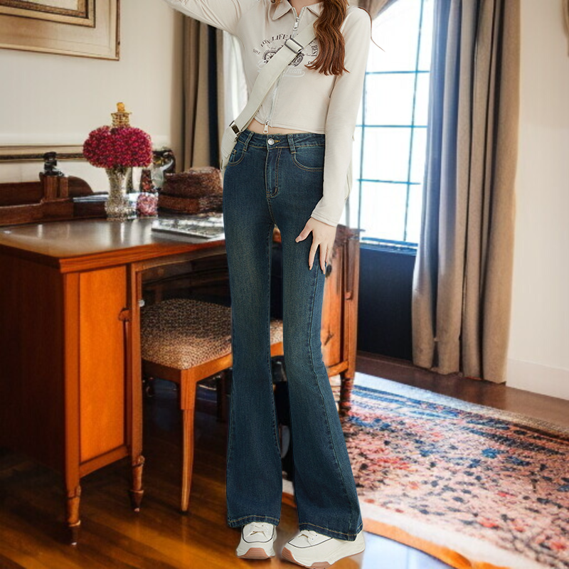 小さめハイウエストワイドジーンズ女性春春スリム細めマイクロフレアワイドパンツ